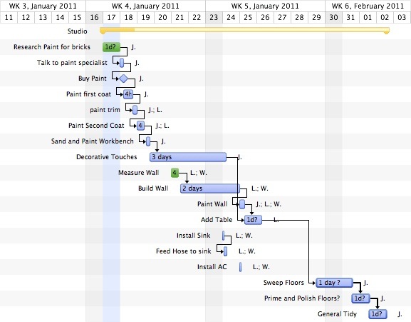 Now, artists are visual people so I know this makes sense – why just say it in task form when you can say it in…Chart form!! This is the timeline, task list and chart for my studio.