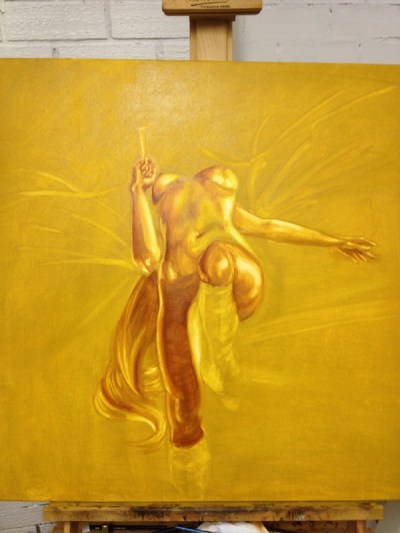 “We’ve only just begun…” The placement for this figure was an enormous challenge as there are large steampunk wings coming in later. I have less than a month to finish this piece so it’s going to be a hard slog to get it all done to the quality I want!